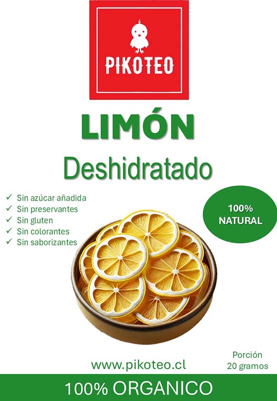 El limón deshidratado de Pikoteo es intenso, ácido y fragante. Una opción saludable para infusionar agua, preparar tés o darle un toque gourmet a cócteles. También puede usarse en cocina como decorativo natural o en mezclas de especias, y combina perfectamente con hierbas como menta o jengibre.